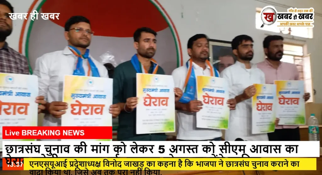 जयपुर: छात्रसंघ चुनाव कराने की मांग को लेकर एनएसयूआई 5 अगस्त को मुख्यमंत्री आवास का घेराव करेगी. रविवार को एनएसयूआई के प्रदेशाध्यक्ष विनोद जाखड़ ने प्रेस कांफ्रेंस कर इसका ऐलान किया. जाखड़ ने कहा कि 5 अगस्त को सुबह 10 बजे प्रदेश भर से छात्र और एनएसयूआई से जुड़े कार्यकर्ता शहीद स्मारक पर इकट्ठा होंगे और यहां से रैली के रूप में मुख्यमंत्री आवास की तरफ कूच करेंगे. उन्होंने कहा कि एनएसयूआई के प्रदर्शन में कांग्रेस के राष्ट्रीय महासचिव और पूर्व मुख्यमंत्री सचिन पायलट, प्रदेश कांग्रेस के अध्यक्ष गोविंद सिंह डोटासरा, कांग्रेस विधायक और पूर्व मंत्री हरीश चौधरी भी शामिल होंगे.