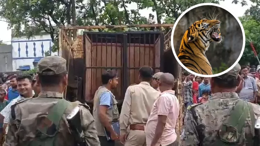 झारखंड की राजधानी रांची में एक हैरान करने वाली घटना सामने आई है. यहां एक गांव में शिकार करने पहुंचे आदमखोर बाघ को गांव वालों ने बंधक बना लिया है. मामले की जानकारी होते ही पूरे इलाके में हड़कंप मच गया. बाघ को देखने के लिए लोगों का हुजूम उस घर के बाहर पहुंच गया, जहां उसे कैद किया हुआ था. सूचना मिलते ही वन विभाग की टीम बाघ के रेस्क्यू के लिए मौके पर पहुंच गई है.