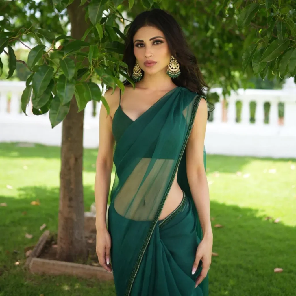मौनी रॉय का नागिन का रोल हमेशा यादगार रहता है. उन्होंने इस सीरियल से काफी पॉपुलैरिटी पाई. फिलहाल अब वह बॉलीवुड में भी नजर आ चुकी हैं और फैशन तो कमाल होता ही है. इस तस्वीर में मौनी रॉय ने एमराल्ड ग्रीन कलर की शीयर जॉर्जेट साड़ी पहनी है, जो बेहद एलिगेंट लुक दे रही है साथ ही स्टाइल में ग्लैमर एड हो रहा है. स्टेटमेंट झुमके उनके लुक को और भी अट्रैक्टिव बना रहे हैं.