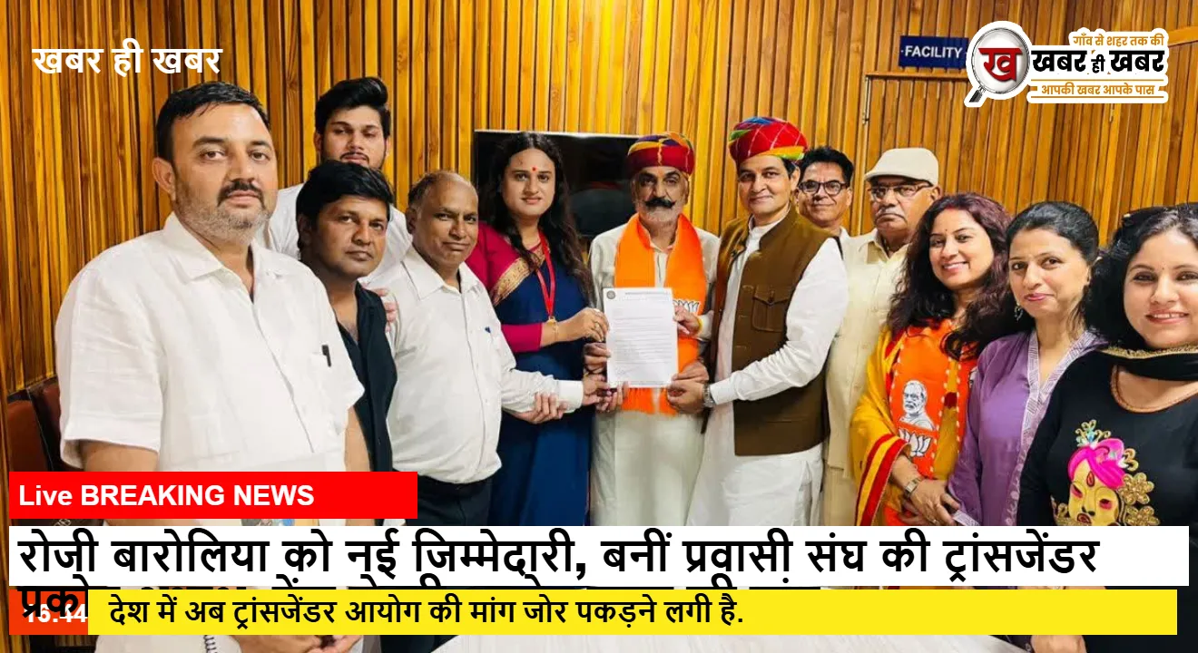 रोजी बारोलिया को नई जिम्मेदारी, बनीं प्रवासी संघ की ट्रांसजेंडर प्रकोष्ठ अध्यक्ष, केंद्र से की आयोग गठन की मांग