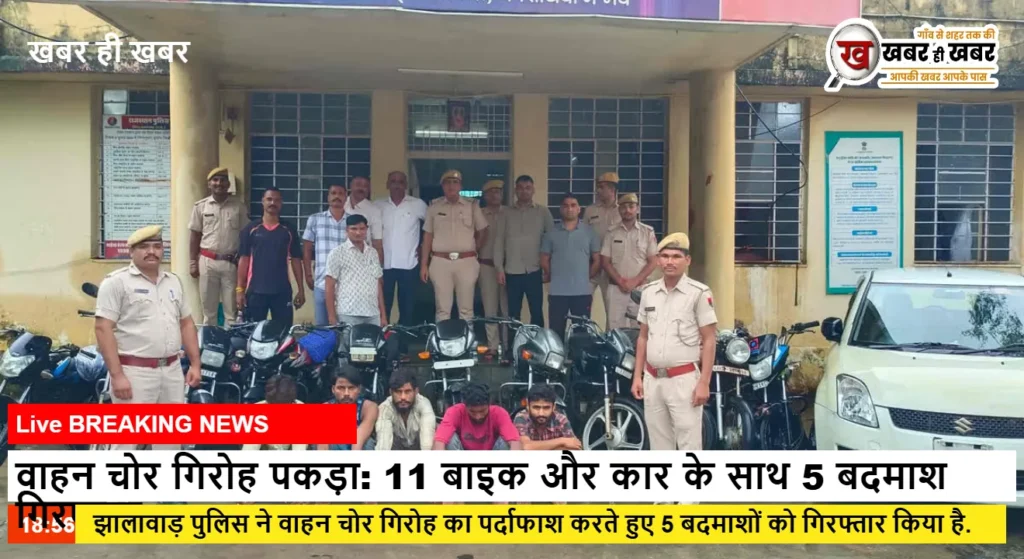 झालावाड़: कोतवाली पुलिस ने शातिर वाहन चोर गिरोह का पर्दाफाश करते हुए 5 बदमाशों को गिरफ्तार किया है. पुलिस ने आरोपियों के कब्जे से एक स्विफ्ट कार और 11 बाइक भी बरामद की गई है. ये वाहन आरोपियों ने झालावाड़ सहित अन्य जगहों से भी चोरी की थी. फिलहाल पुलिस गिरफ्तार आरोपियों से वारदात में शामिल अन्य साथियों को लेकर पूछताछ करने में जुटी है.