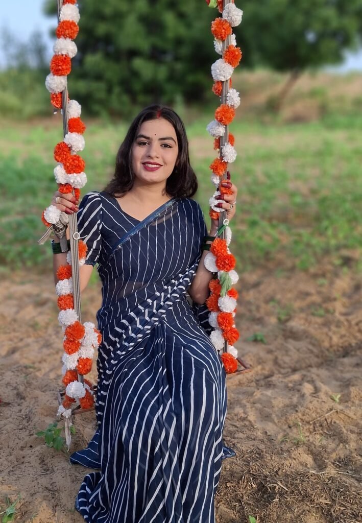 मोमासर में हरियाली तीज पर झूले का आनंद लेती युवती