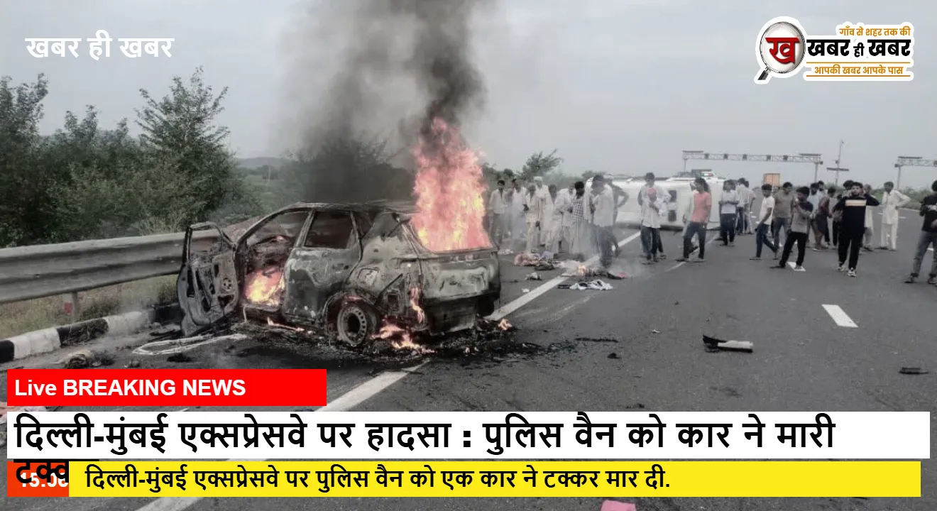 दिल्ली-मुंबई एक्सप्रेसवे पर हादसा : पुलिस वैन को कार ने मारी टक्कर, फिर लगी आग, 4 पुलिसकर्मी सहित 9 घायल