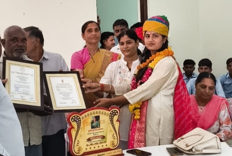 मोमासर की होनहार बेटी और राष्ट्रीय स्तर की स्काउट गाइड खिलाड़ी कृष्णा प्रजापत को राष्ट्रपति पुरस्कार 2025 के लिए चुने जाने पर सम्मान समारोह
