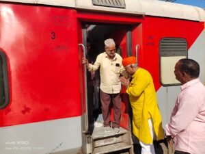 ट्रेन से रवाना हुए वृद्धजन, विधायक श्री जेठानंद व्यास ने की मुलाकात