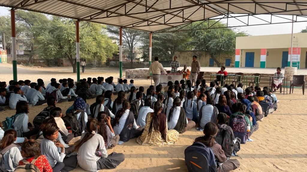 लूणकरणसर (श्रेयांस बैद)।राजकीय उच्च माध्यमिक विद्यालय जैतपुर में विधिक जागरूकता शिविर लगाया गया इस दौरान जिला विधिक सेवा प्राधिकरण के पैनल सदस्य पुष्पेंद्र चौधरी ने विद्यार्थियों को विधिक जानकारी प्रदान करते हुए बताया कि शोषण एवं अन्याय से बचने के लिए 1098 पर सम्पर्क करें ये चाइल्ड हेल्प लाइन देश भर में कार्य करती है उन्होंने कहा कि किसी भी व्यक्ति के साथ अन्याय की दिशा में कोर्ट के 15100 नंबर पर निःशुल्क सहायता प्राप्त की जा सकती है।सामाजिक न्याय विभाग द्वारा पेंशन योजना,साइबर क्राइम के बढ़ते मामलों के लिए 1930 पर शिकायत दर्ज करवाई जा सकती है।