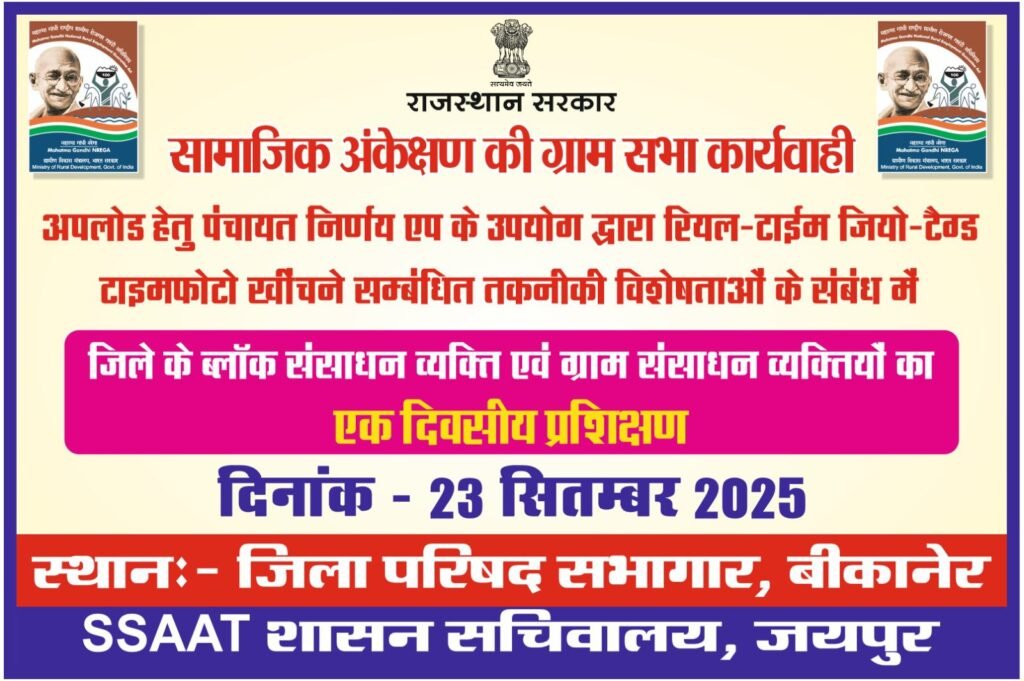 SSAAT, जिला परिषद बीकानेर, ब्लॉक एवं पंचायत अधिकारियों को निर्देश दिए गए हैं कि प्रशिक्षण और उपस्थिति सुनिश्चित कर संबंधित व्यक्तियों तक समय रहते सूचना पहुंचाएं।