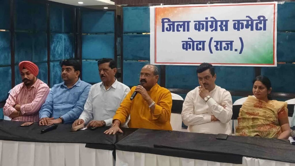 कोटा: कांग्रेस पार्टी प्रदेश सरकार के खिलाफ बड़ा प्रदर्शन करने जा रही है. यह प्रदर्शन 10 सितंबर को कोटा में आयोजित होगा. इसे लेकर आज कांग्रेस के नेताओं ने पत्रकारों से रूबरू होकर पूरे आंदोलन की जानकारी दी. उन्होंने प्रदेश सरकार पर बाढ़ पीड़ितों को राहत न देने, कानून व्यवस्था चौपट होने, वोट चोरी और अन्य मुद्दों पर गंभीर आरोप लगाए.