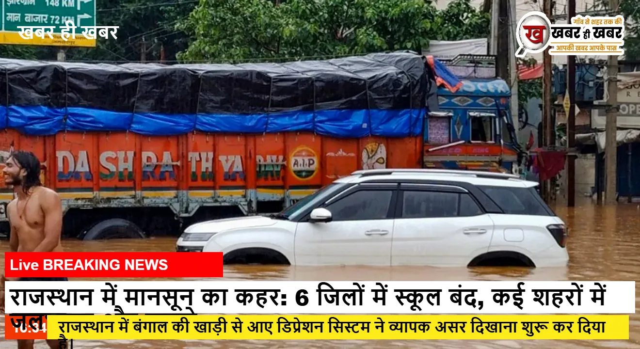 राजस्थान में मानसून का कहर: 6 जिलों में स्कूल बंद, कई शहरों में जलभराव और हादसे