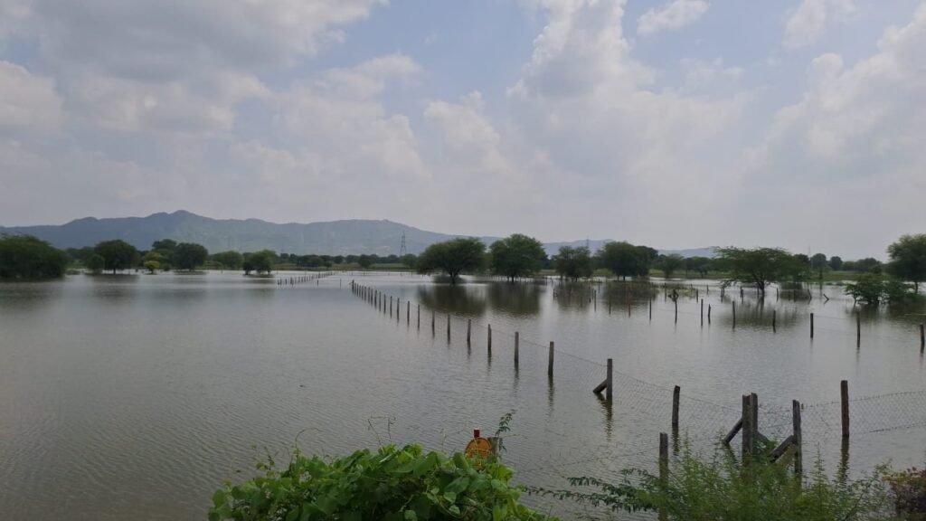 अजमेर : राजस्थान में बारिश का पैटर्न बदला हुआ सा इस बार नजर आ रहा है. इस बार अजमेर में 1 हजार 92 एमएम बारिश हो चुकी है, जबकि अजमेर में औसतन 450 एमएम बारिश ही होती रही है. ऐसे में बारिश ने अजमेर के बांध-तालाबों को लबालब कर दिया है. इनमें वरुण सागर (फॉयसागर) और आना सागर झील भी हैं. इन दोनों झील से निकलता पानी शहर की निचली बस्तियों के लिए मुश्किल बना हुआ है. वहीं, झील के इसी पानी ने सराधना उप तहसील से जुड़े एक दर्जन से अधिक गांव के किसानों की मेहनत और उम्मीद पर पानी फेर दिया है. किसानों की फसल ही नहीं खेत भी पानी में डूबे हुए हैं, यानी खरीफ ही नहीं रबी की फसल भी किसानों को नहीं मिल पाएगी. फसल बर्बाद होने के साथ-साथ चारा भी नहीं रहा. यही वजह है कि पशुपालन पर निर्भर किसानों को अपने पशु बेचने पड़ रहे हैं. किसानों के दर्द पर मुआवजे का मरहम भी नहीं लग पा रहा है. इससे किसानों के हालात बद से बदतर हो रहे हैं. ईटीवी भारत ने ग्राउंड जीरो पर जाकर हालातों का जायजा लिया.