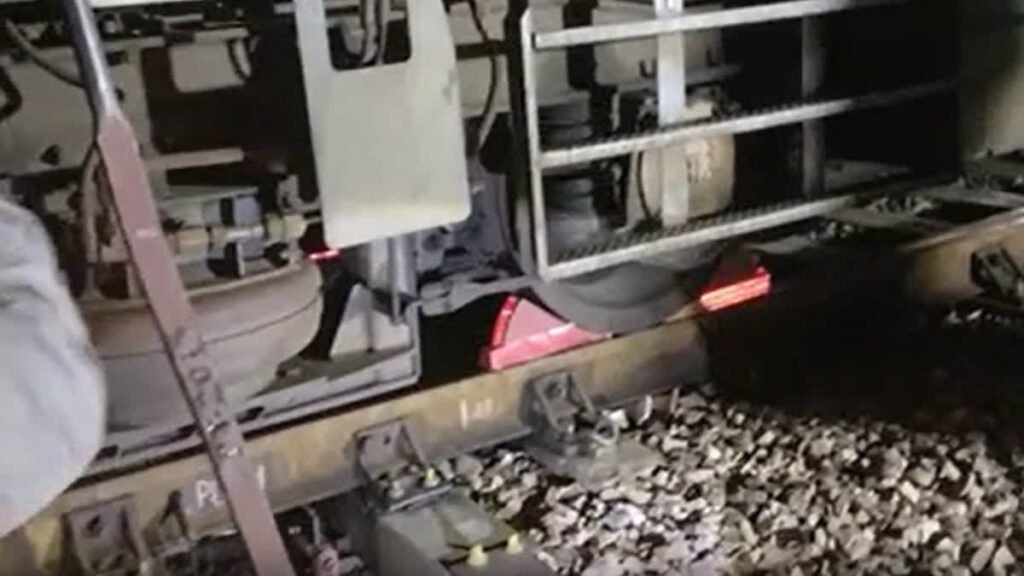 यार्ड में ट्रेन का इंजन बेपटरी, पांच घंटे की मशक्कत के बाद ट्रैक पर बहाल