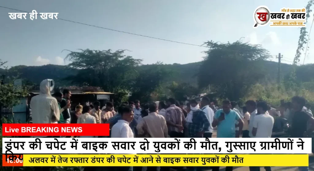 डंपर की चपेट में बाइक सवार दो युवकों की मौत, गुस्साए ग्रामीणों ने किया रास्ता जाम